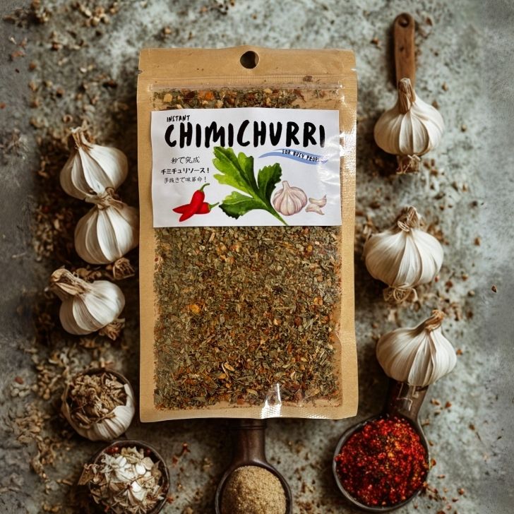 ハーブとスパイスを絶妙にブレンドしたスパイスミックス。オイルとお酢を加えるだけで、秒で本格チミチュリソースの完成です。